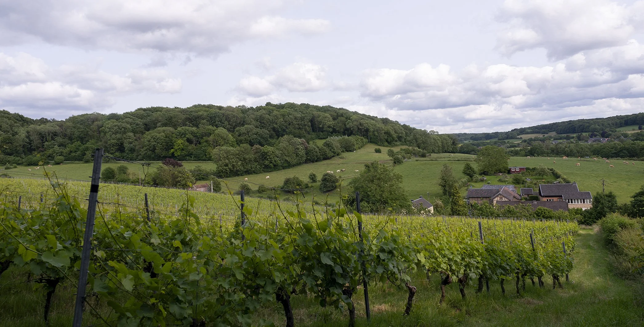 The 2.5-hectare vineyard is located along Krindaal, between De Plank and Sint-Martens-Voeren. Its sun-drenched south-facing slope, sheltered by a forest to the north, offers ideal conditions for viticulture. The soil of flint and limestone, similar to that found in Champagne and Chablis, was formed some 70 million years ago in an ancient sea. Fossils of sea urchins, coral and belemnites can still be found in the vineyard. A thin layer of fertile loess covers the limestone bedrock.